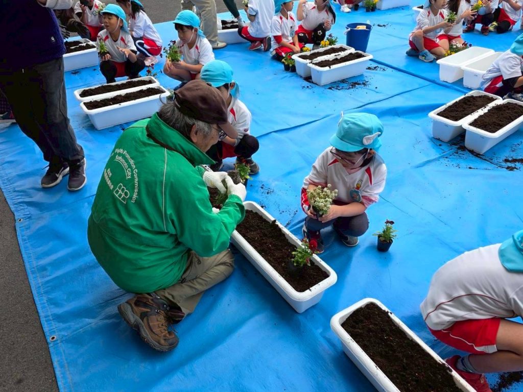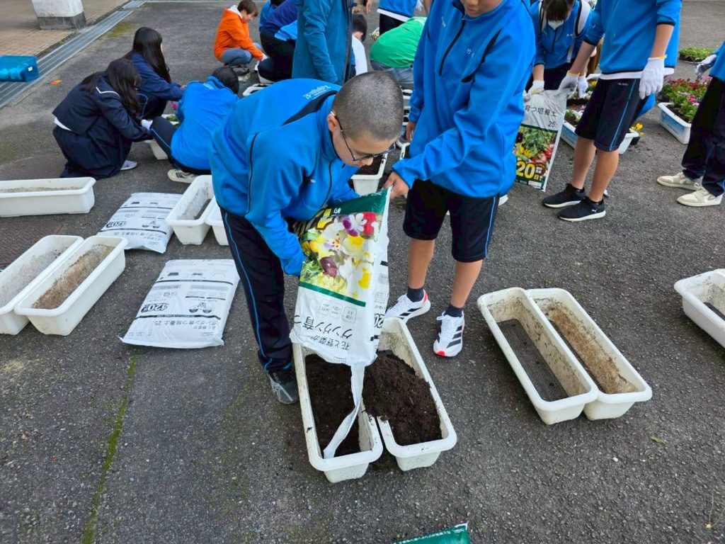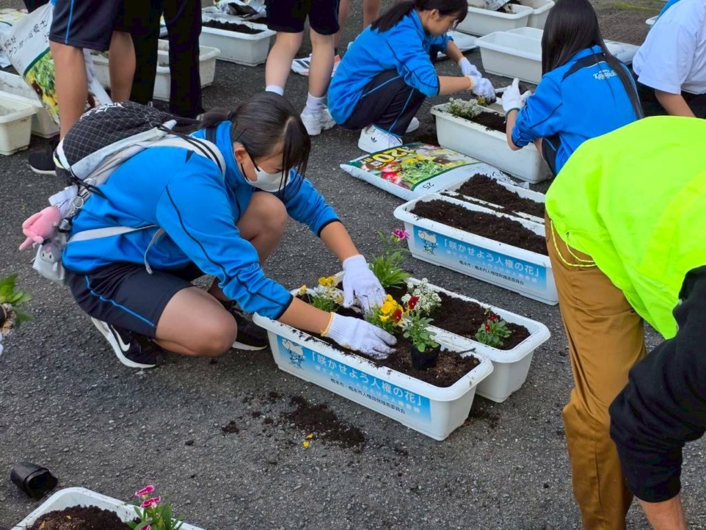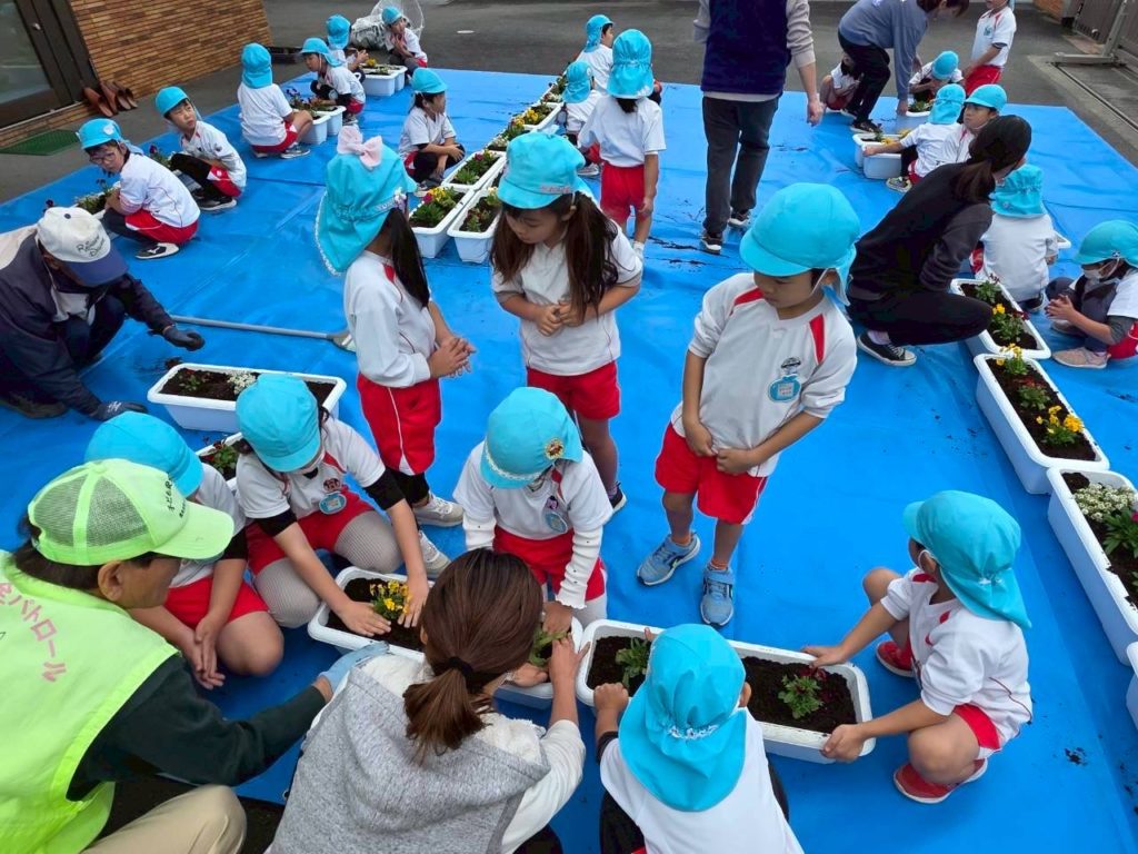 町内の子ども園・きのかわ支援学校・小中学校の児童生徒・伊都中央高等学校と花植え交流会を行います。パンジーを児童生徒と一緒に植え、交流を深めると同時に、学校の美化に努めます。「花植え交流会は、橋本市人権啓発推進委員会(高野口地区・信太地区・応其地区)共育コミュニティーの共催事業として実施しています。植えた花は、学校だけでなく、以下の場所等にも置きます。『高野口駅・・高野口地区公民館・産業文化会館・友愛児童館・伏原文化センター・名古曽児童館・名古曽文化センター・高野口駅』