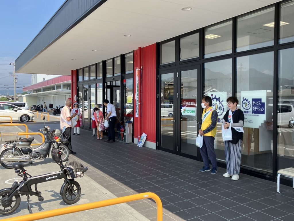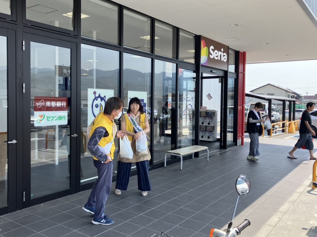 出発式終了後9時30分から松源伏原店・松源高野口店・ハッスル高野口店・オークワ高野口店の各場所にて啓発活動を行いました。
